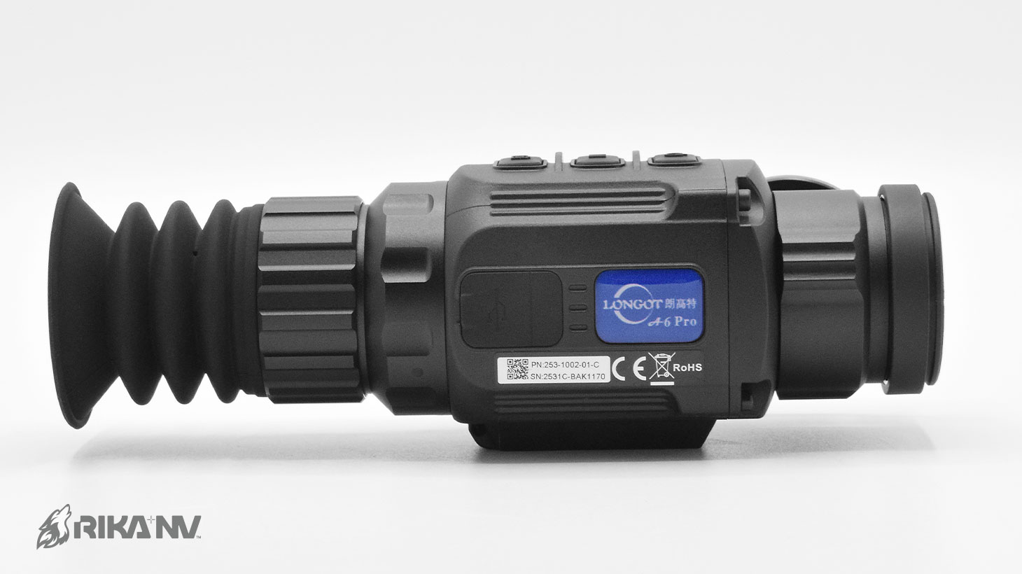 Объектив прицела Longot A6Pro сделан из дорогостоящего германия. Фокусное расстояние объектива 19 мм. Это позволяет прицелу захватывать достаточно теплового сигнала, чтобы сформировать на дисплее прибора качественное изображение.
