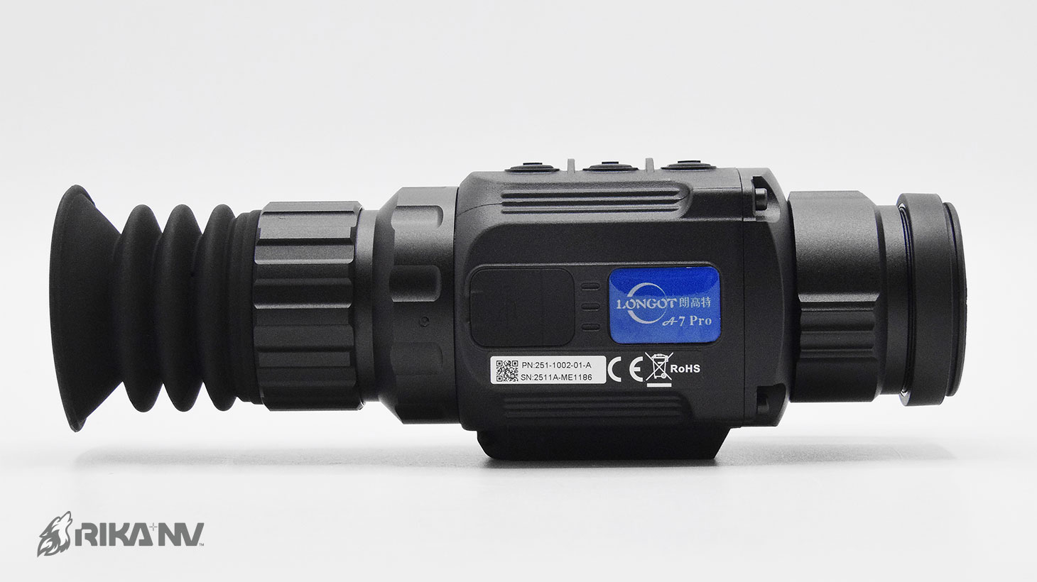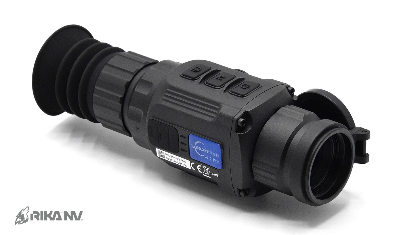 Объектив прицела Longot A7Pro сделан из дорогостоящего германия. Фокусное расстояние объектива 25 мм. Это позволяет прицелу захватывать достаточно теплового сигнала, чтобы сформировать на дисплее прибора качественное изображение.